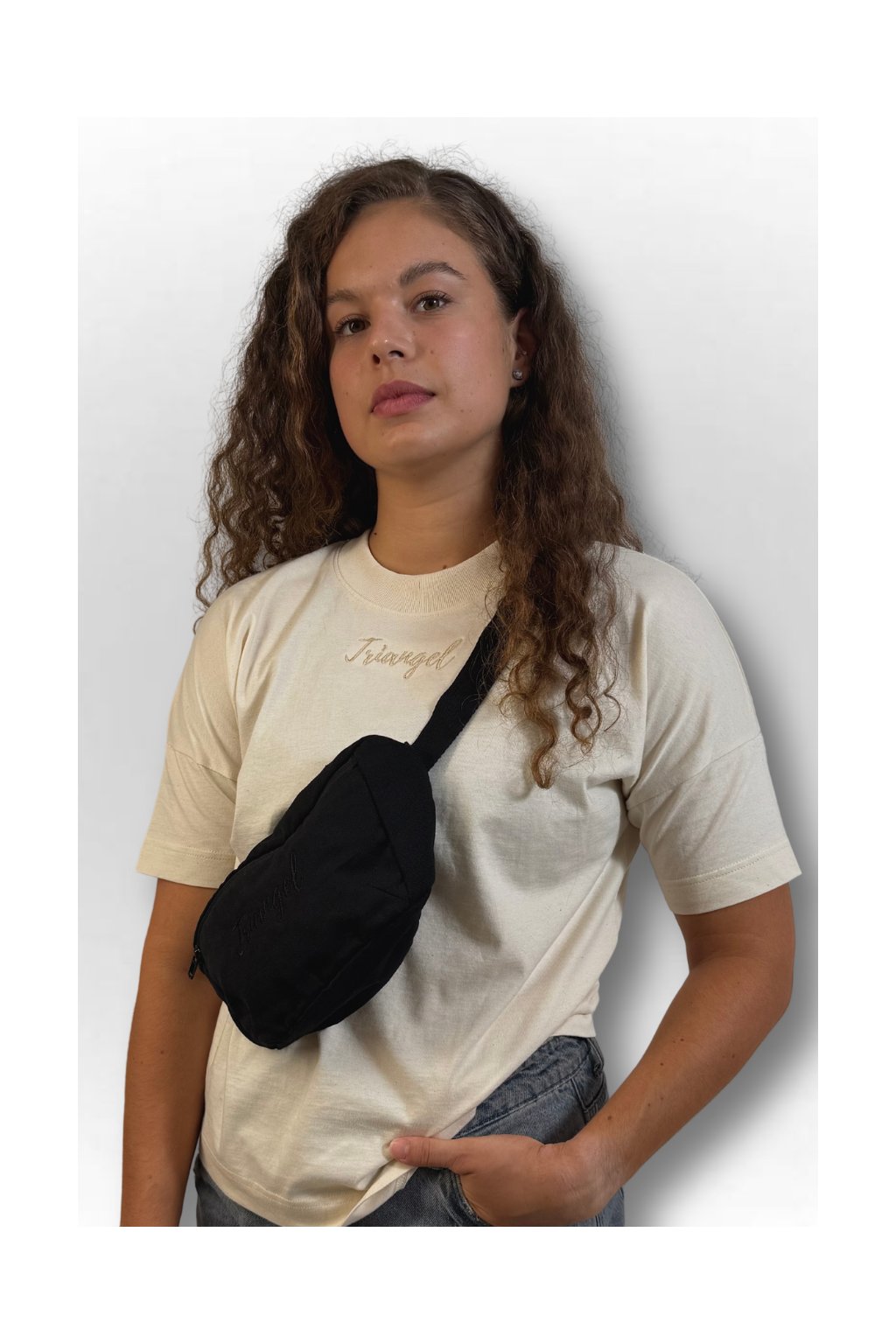 Praktická černá ledvinka v minimalistickém designu. Na přední straně ji zdobí pouze vyšité logo Triangel, které jí dodává čistý a nadčasový vzhled. Díky univerzální barvě se snadno kombinuje s jakýmkoli outfitem a je ideálním doplňkem pro volný čas i každodenní nošení.