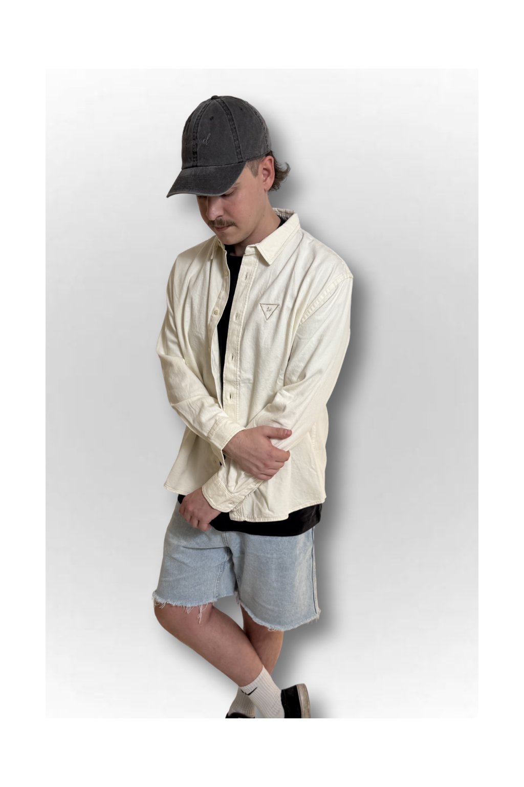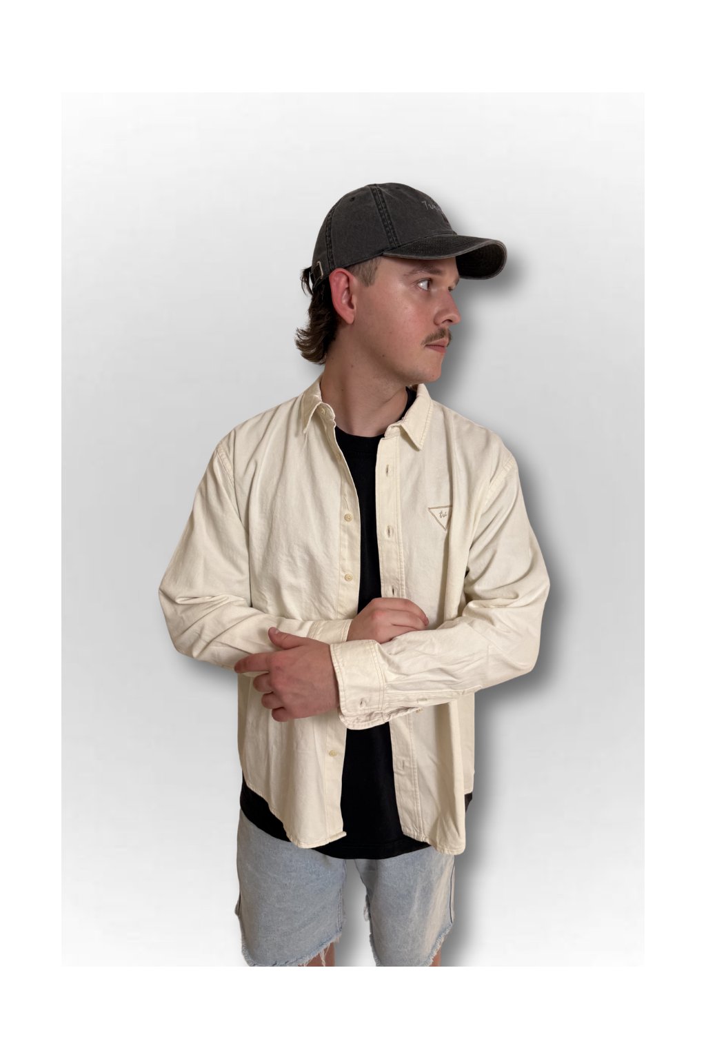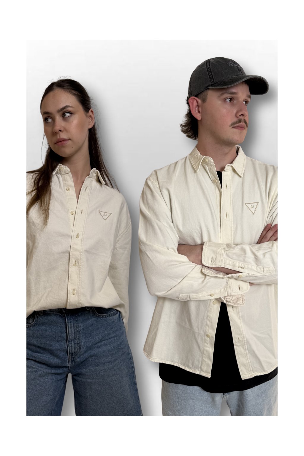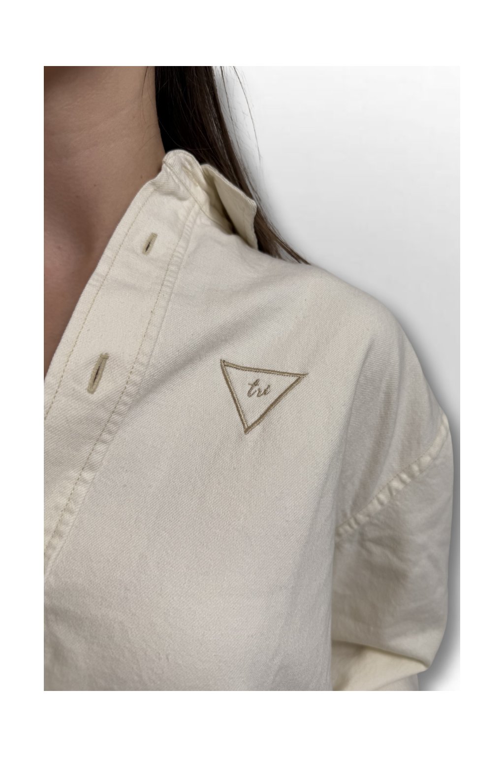 Krása v detailu. Unisex košile z pevného materiálu s jemnou výšivkou Triangel na prsu. Můžeš si ji obléct i na tričko místo mikiny. Minimalismus, který mluví za tebe.